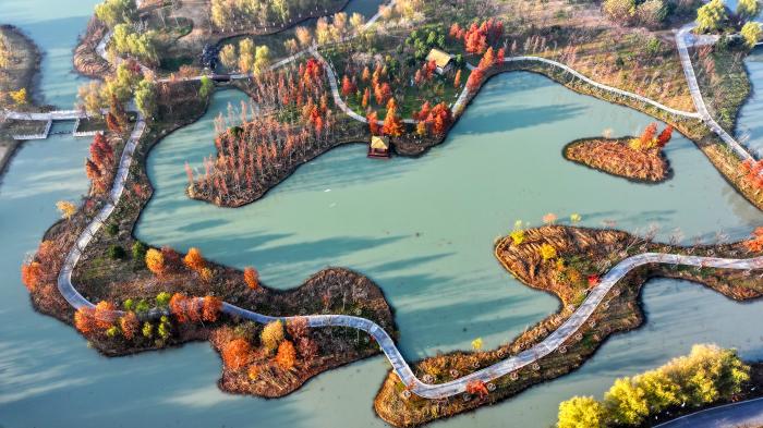 12月7日拍摄的江苏省昆山市景枫公园冬景(无人机照片)。新华社发(王须中摄)