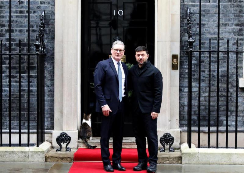12月8日,在英国伦敦唐宁街10号首相府前,英国首相斯塔默(左)与乌克兰总统泽连斯基合影。新华社记者李颖摄