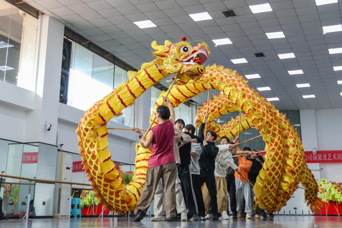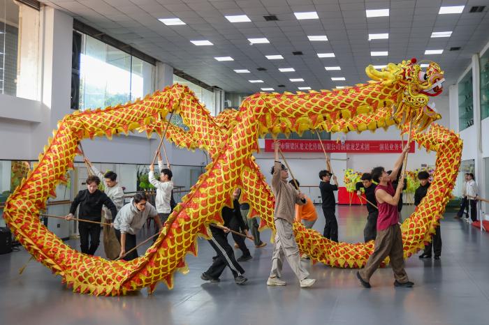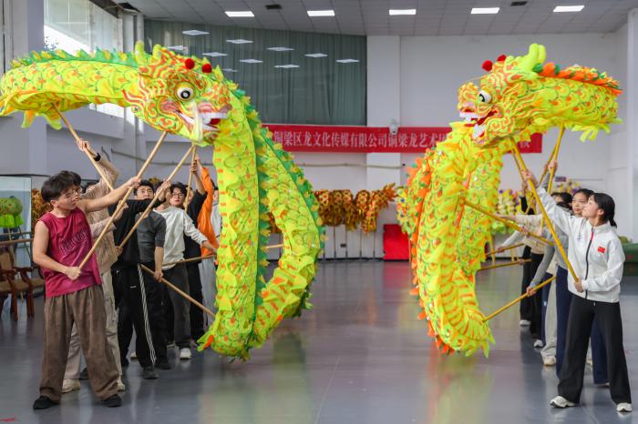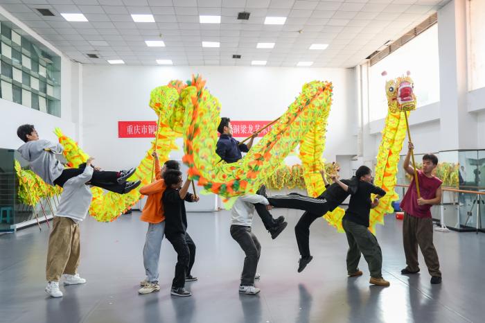重庆铜梁龙舞是以“龙”为主要道具的舞蹈艺术,兴起于明,鼎盛于清,以动作丰富、气势恢宏为特点,是中国龙舞的重要代表之一,也是一种传统民间体育项目。2006年,铜梁龙舞入选首批国家级非物质文化遗产名录。12月7日,重庆铜梁龙艺术团竞技舞龙队队员魏烨(左二)和队友进行日常训练。
