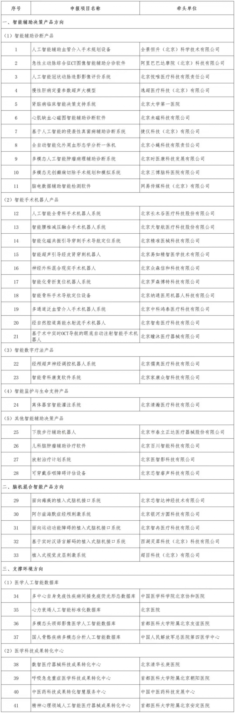 12月10日,北京青年报记者从北京市经信局了解到,近日,工业和信息化部科技司、国家药品监督管理局医疗器械注册管理司对2025年人工智能医疗器械创新任务揭榜挂帅入围单位名单进行了公示,全国共182个项目入选,北京市41个项目入围,其中,智能辅助诊断产品28个、脑机混合智能产品5个、支撑环境方向产品8个,入选数量居全国首位,远超第二名,显示出北京在人工智能医疗器械领域的技术引领地位与产业集聚优势。