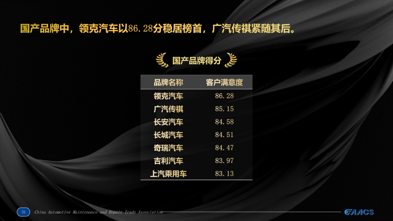 12月9日,中国汽车维修行业协会发布《2025年汽车售后服务客户满意度调查(CAACS卡思调查)》,本次调查共涉及38个品牌、185款车型。广汽传祺、广汽埃安、广汽本田、广汽丰田等品牌多款车型荣登客户满意度排行榜。其中,广汽埃安、广汽丰田分别荣登新能源品牌、合资品牌榜首,埃安S、埃安Y及传祺M8分别荣登新能源A级车型、新能源SUV车型、MPV车型榜首。