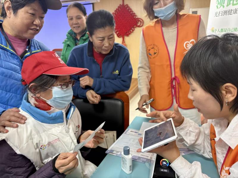 最受关注的仍属如新生物光子扫描仪体验环节。长者们在志愿者引导下,通过无创、快速的扫描,了解自身抗氧化状况。志愿者结合检测结果,提供个性化健康建议,并送上诚挚的祝福,让长者们感受到科技温度与人文关怀。