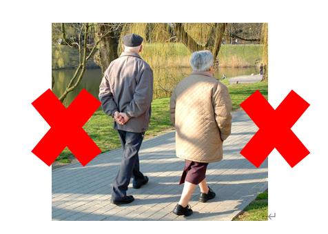 小步慢走:缩小步幅,像“企鹅一样”外八字行走,身体略前倾,重心始终保持在脚下。