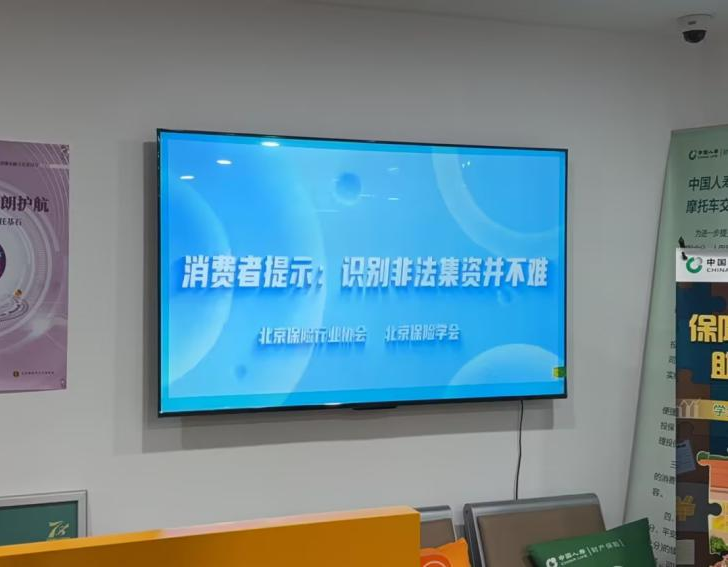 线上线下联动,织密全域宣传网络。中国人寿财险北京市分公司积极响应行业协会年初防非宣教活动,同步启动多渠道推广宣传:全辖线下服务网点电子宣传屏幕滚动播放行业协会下发的春节元素“一句话”防非海报、小心看似诱人的“财富密码”系列防非宣传视频,为办理业务的客户宣传金融消保知识,切实提升广大客户风险防范意识,从源头降低欺诈风险隐患;线上通过北分官方公众号自有渠道,持续推送反欺诈宣传短片、以案说险/风险提示图文、春运金融安全提示、银行卡安全使用、手机支付防诈骗、返乡消费维权指南,曝光非法金融活动新套路等推文,让消保知识触手可及。
