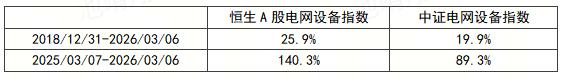 先看电网设备,选电网相关指数,核心要看“龙头集中度”。市场上有两条相关指数,恒生A股电网设备指数和中证电网设备指数,数据说话更有说服力:自2018年基日至今,恒生A股电网设备指数年化收益25.9%,远超中证的19.9%;近一年涨幅更是达到133.6%,高出中证50个百分点。