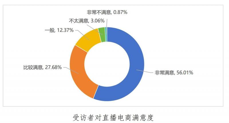 调查显示:目前,直播电商已成主流消费模式,消费者对直播电商消费满意度水平总体较高,83.69%的受访者表示对直播电商消费体验表示非常满意或比较满意。但直播电商在营销宣传等方面仍然有待提升,部分直播间存在夸大宣传、商品实物与直播描述存在差距、信息公示不够透明等问题。