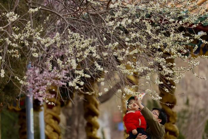 据了解,碧桃正常花期在3月底至4月初,今年暖冬积温充足、近期气温回升快,促成这株碧桃“抢跑”开花。