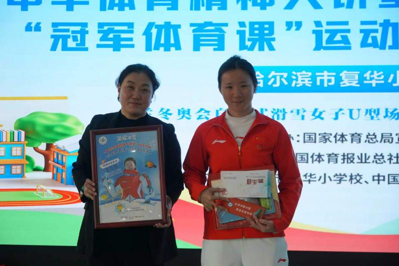 4月24日,“中华体育精神大讲堂”校园宣讲活动、“冠军体育课”运动员进校园活动之“荣耀冰雪”第三站来到哈尔滨市复华小学校。从世界赛场回到家乡的自由式滑雪U型场地运动员李方慧,通过分享自己雪上逐梦的成长故事,将中华体育精神传递给现场师生,鼓励同学们不惧黑夜,勇敢追光。