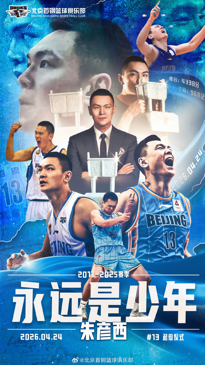 朱彦西在24日比赛中场休息时“登场”。五棵松全场球迷起立见证这个重要时刻。朱彦西说:“我心里只有感激与感谢。感激俱乐部、感激所有教过我的教练,我的兄弟们,我的高光时刻就是与他们一起获得了三次总冠军。我也感谢所有球迷,是你们一直支持我们。我在此郑重地宣布:再见了球员朱彦西。我特别幸运与知足,能够实现一人一城的梦想。这是我的荣幸。我希望球迷们继续支持现在的这支球队,大家齐心协力,再创辉煌。”