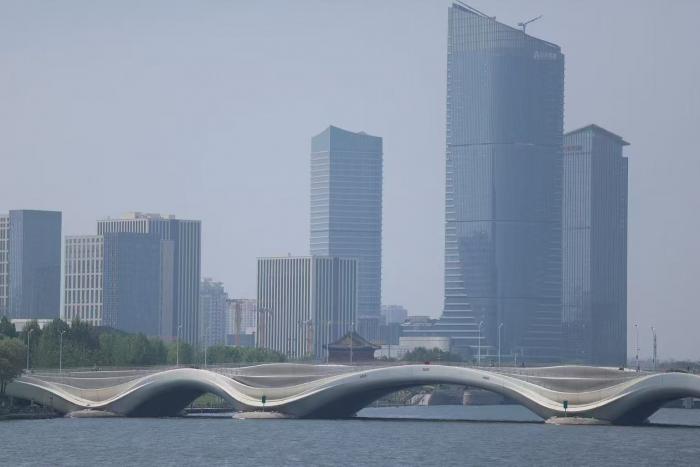 4月26日上午,北京青年报记者在五河交汇处看到,千荷泻露桥桥面平整开阔,双向六车道标线清晰,车辆跨河通行顺畅,全程用时不到一分钟。