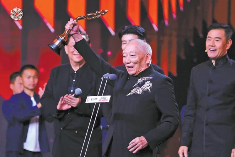 短片《江湖永存人心不老》将全场目光投向中国武侠电影的泰斗级人物——袁和平导演。随后,袁家班与少林塔沟武校联袂带来表演《致敬武侠》,刚柔并济的武术动作在舞台上“画出”写意画卷。梁绍鸿、元华、于荣光、吴京、张晋等嘉宾登台,与特邀嘉宾吴思远、曾思敏、周超、莒谦朗等一同,向这位为中国动作电影倾注毕生心血的前辈致以崇高敬意。北京国际电影节将“终身成就奖”授予袁和平导演,以表彰他为华语电影乃至世界影坛作出的卓越贡献。