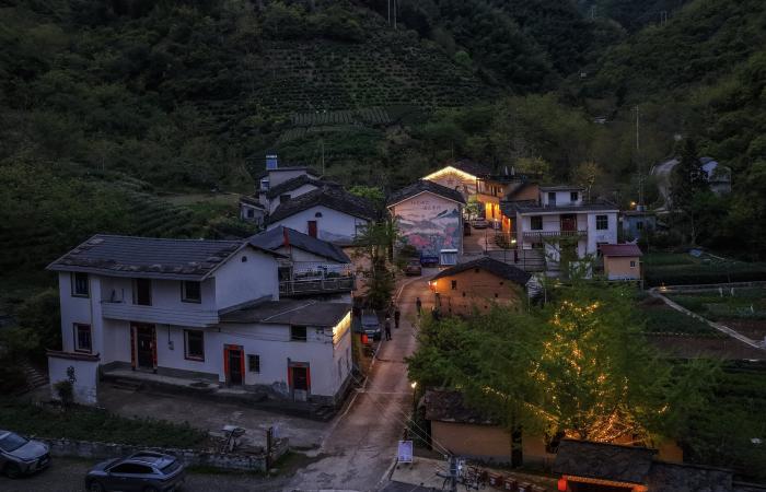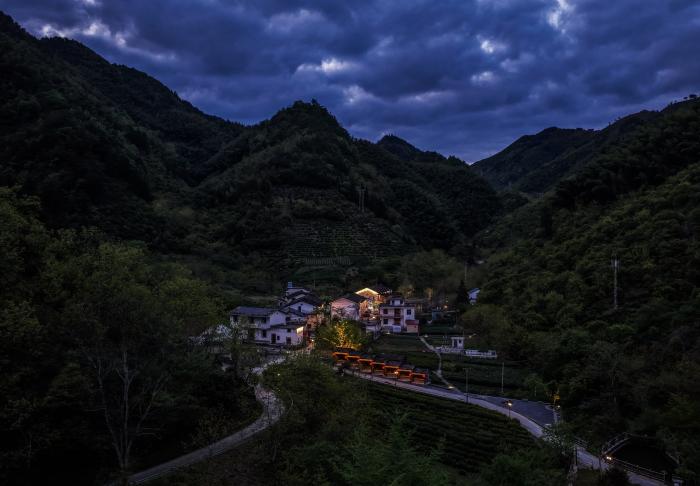 近年来,该村依托高山上自然生长的数百亩杜鹃及茶叶、茶油、竹笋等特色农产品,通过修缮盘山公路、开辟露营基地、搭建观景平台、发展共享民宿,逐渐形成以登山观景、避暑养生为特色的农文旅产业,带动山村村民增收致富。夜色中的淳安县屏门乡金陵村(4月24日摄,无人机照片)。