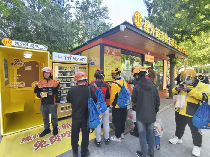 4月27日,朝阳区建外街道联合康师傅共同打造的政企公益合作项目——“1㎡暖心面馆”,在建外街道万达骑士驿站正式揭牌启用,为新就业群体打造了一处“亮灯陪伴、温暖可及”的“深夜能量站”。