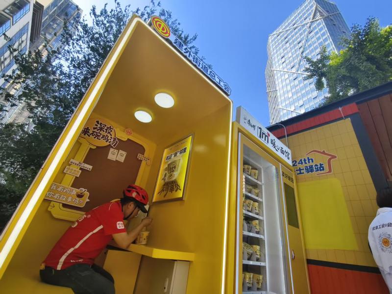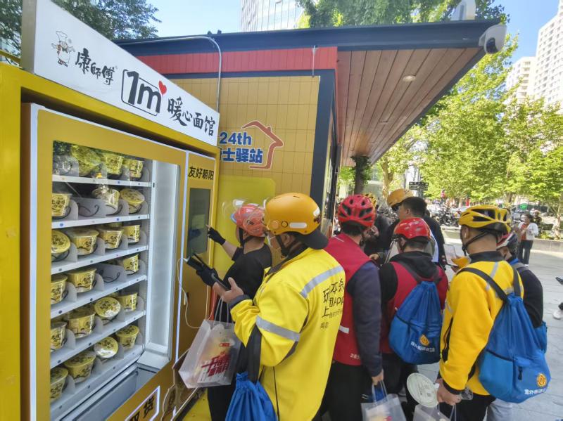 4月27日,朝阳区建外街道联合康师傅共同打造的政企公益合作项目——“1㎡暖心面馆”,在建外街道万达骑士驿站正式揭牌启用,为新就业群体打造了一处“亮灯陪伴、温暖可及”的“深夜能量站”。