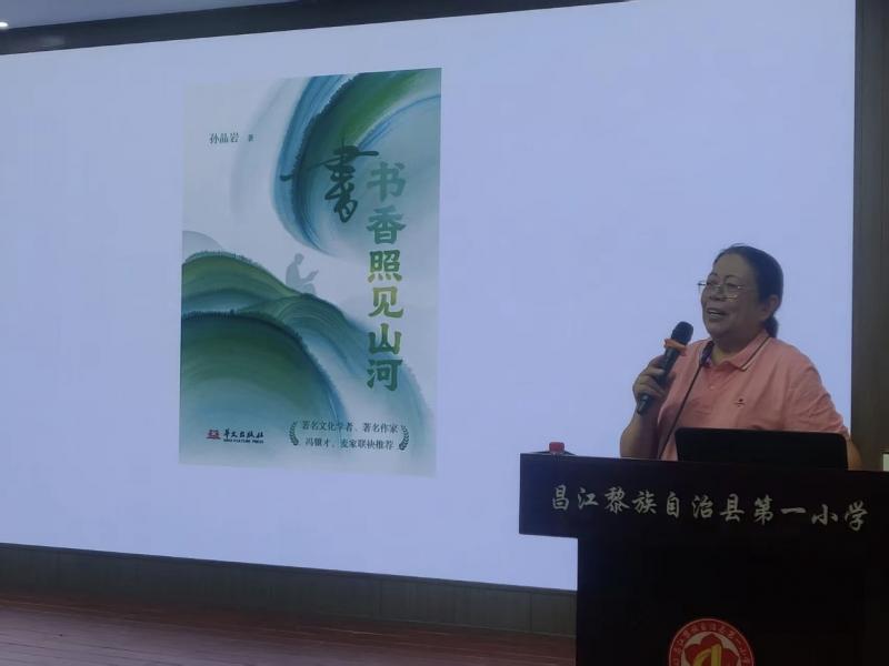 在海南,孙晶岩走进多所学校,真诚分享阅读与写作的亲身经历,结合创作感悟解读文学经典、传递时代精神,通过互动问答、签名留念等形式拉近与学生距离,激发阅读兴趣。她结合亲身经历,分享《书香照见山河》的创作历程,讲述书中山河故事与人文细节,解读"书香与山河相融"的内涵,传递家国情怀与文化担当。