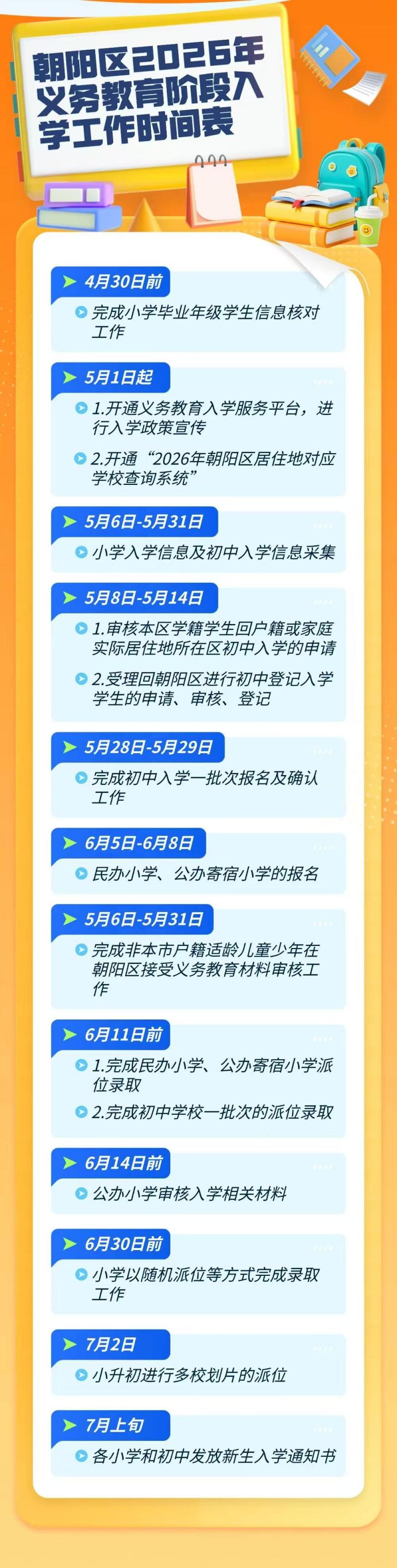 朝阳区发布2026年义务教育阶段入学政策,支持符合条件的同一家庭儿童长幼随学