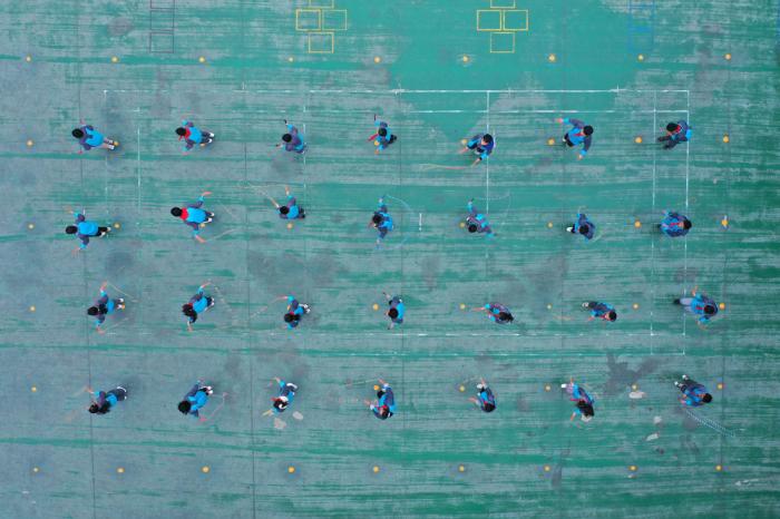 12月11日,学生在大课间进行跳绳运动(无人机照片)。 摄影/新华社记者 彭昭之