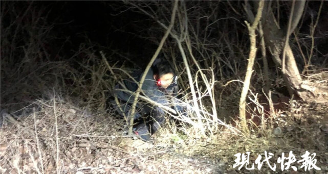 祁靖和景区管理处三区队两名救援队员打着手电沿着陡峭的山沟深一脚浅一脚向下摸索前进,沿涂是潮湿的泥土,带刺的荆棘、树杈和松散的石块,稍有不慎就有石块滑落,经过一个多小时的努力摸索,终于在距离山顶约150多米的位置看到一团荆棘丛后有微弱的亮光在挥舞,并隐隐约约听到有人在呼救。救援人员摸索着攀爬到迷路三人的身边,此时迷路的父子三人又饿又冷,好在没有受大伤,只是脸和手上有零星树枝划伤,仍可以行动。