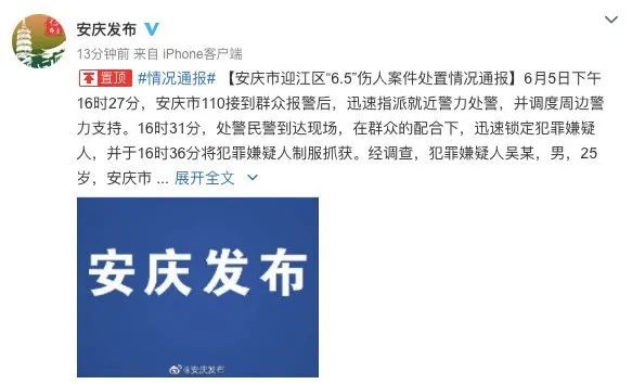 6月6日,安徽省安庆市人民政府新闻办公室发布安庆伤人案最新情况通报: