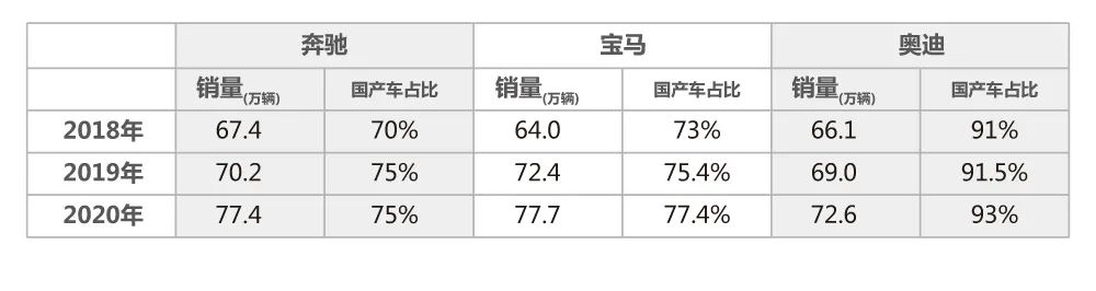统计数据显示,2020年,由奔驰、宝马、奥迪组成的第一梯队在华总销量约为228万台,牢牢把握住了豪华车市场的九成份额,剩下的10%则由雷克萨斯、凯迪拉克、沃尔沃、捷豹路虎,甚至包括定位更高的保时捷,以及电动新势力特斯拉、蔚来、理想等多家品牌竞相抢夺。值得注意的是,BBA不仅在国内拥有较大体量,在全球范围内的表现也极为可观。仅以2020年为例,奔驰、宝马的全球销量就均超过200万台,加上它们强大的品牌号召力,利润优势自不必多言。