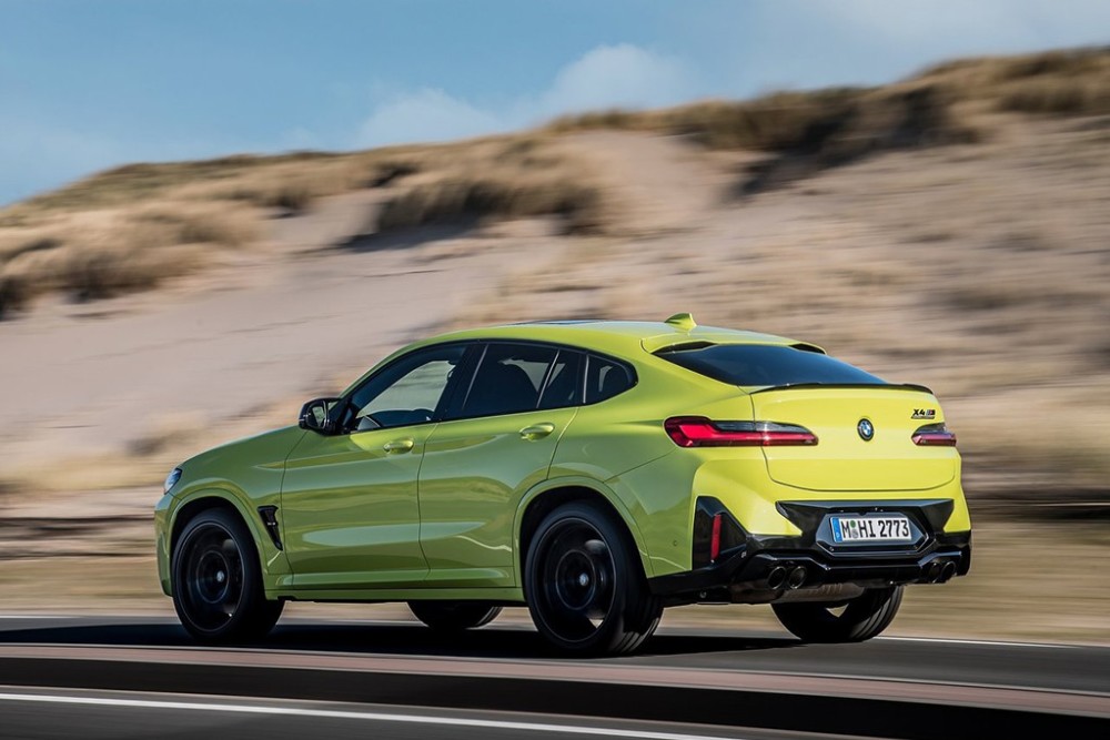 新款宝马X4 M的尾厢上设计了一个尺寸不大的黑色扰流板,下方则配备了造型更加战斗的双边共四出排气。