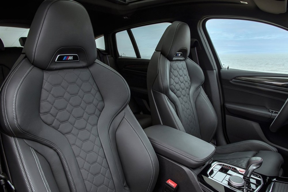 新车配备了一体式运动座椅,座椅中间区域采用了六边形缝线工艺,肩部和腰部支撑比较到位,头枕上还设有M车型的专属标识。