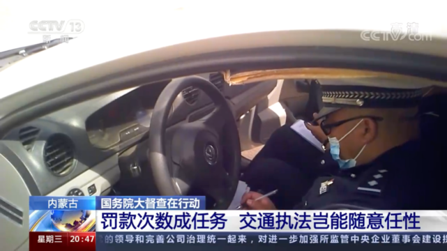 9月8日,央视《东方时空》播出了《国务院大督查在行动 罚款次数成任务 交通执法岂能随意任性》的节目,节目曝光的地点是内蒙古。