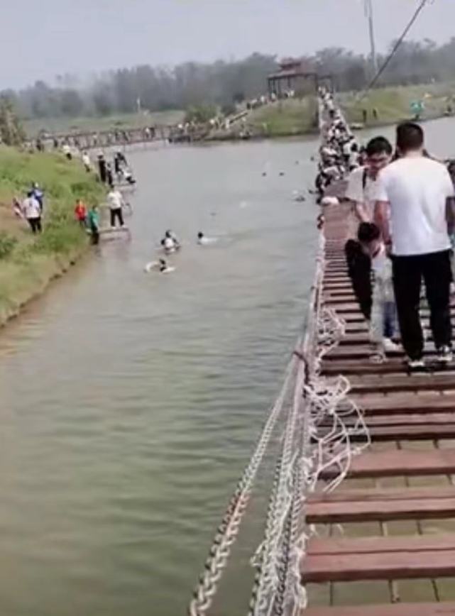 Qnews|河南中牟一景区吊桥绳索断裂致十余名游客落水 当地:景区暂停营业