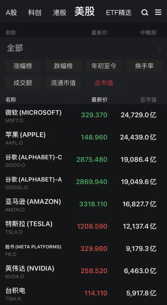 超越脸书,在美股市值排行榜上位列第六——排在前面的,清一色全部是互联网科技公司,其中暂居首位的是微软,市值为2.47万亿美元。
