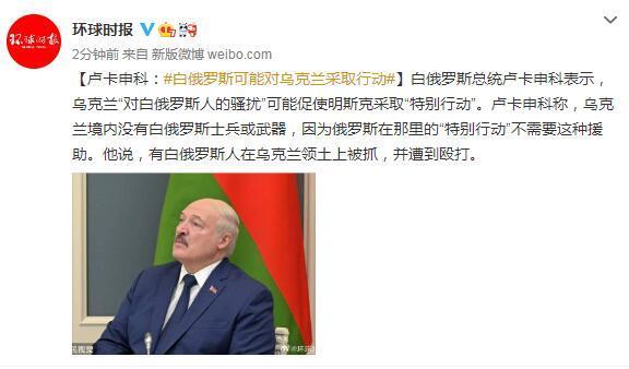 白俄罗斯总统卢卡申科表示,乌克兰“对白俄罗斯人的骚扰”可能促使明斯克采取“特别行动”。卢卡申科称,乌克兰境内没有白俄罗斯士兵或武器,因为俄罗斯在那里的“特别行动”不需要这种援助。他说,有白俄罗斯人在乌克兰领土上被抓,并遭到殴打。