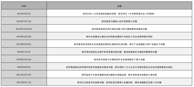 从那时起至今,中央财经委一共召开了11次会议,此前10次会议召开的时间和议题分别是: