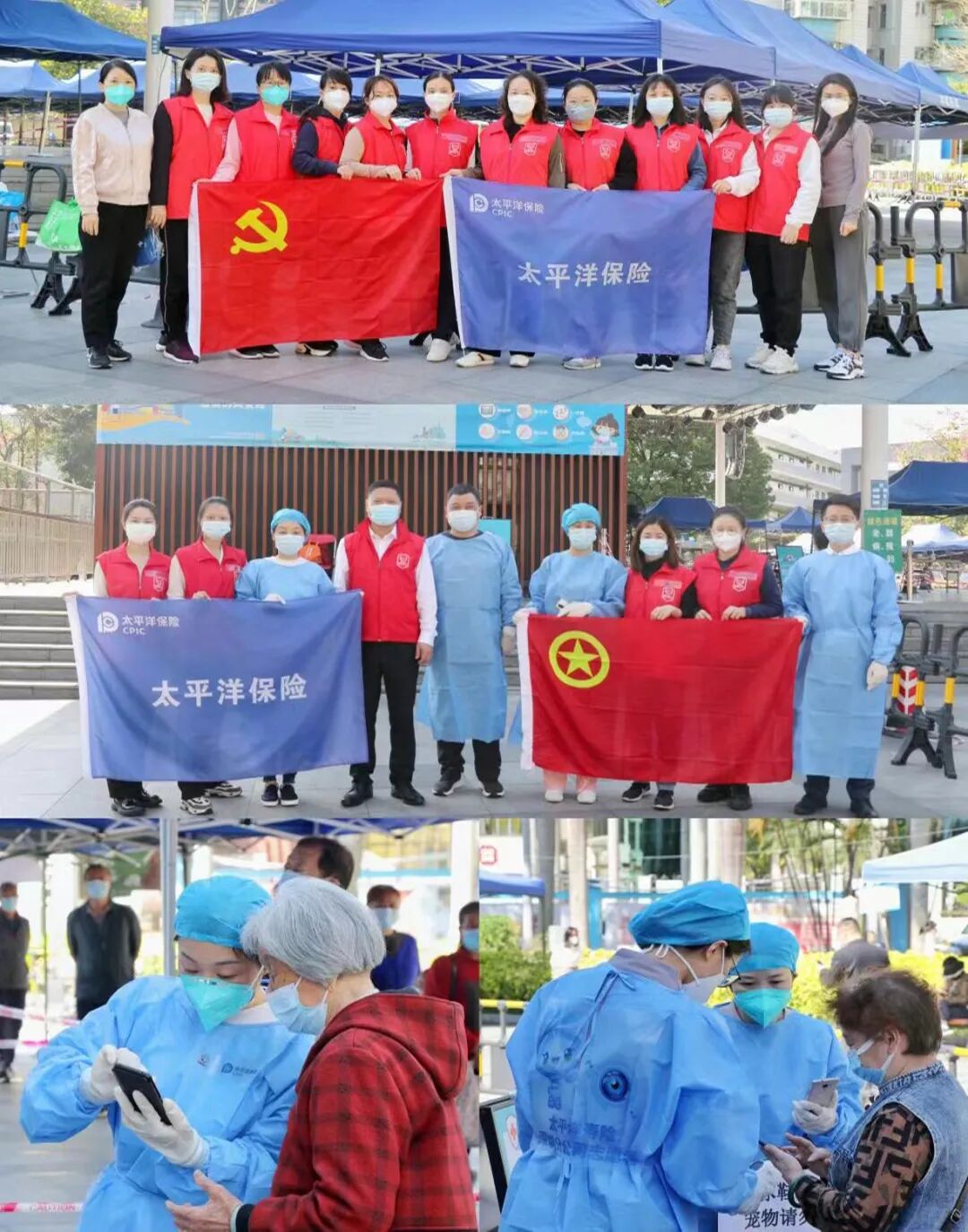 中国太保寿险广东分公司佛山中支在全司发通知号召党员、干部、员工志愿者支援,不到半小时便组织起了一支7人志愿队伍,第一时间在社区的核酸检测现场协助指引排队、指导群众填写资料等。