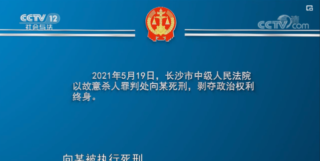 2021年5月19日,长沙市中院以故意杀人罪判处向某死刑,剥夺政治权利终身。