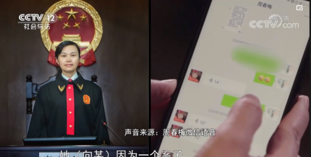 节目还披露了周春梅的微信语音,“她(向某)因为一个案子成了当事人,她认为我是法官,就能够帮她摆平这个事情。”