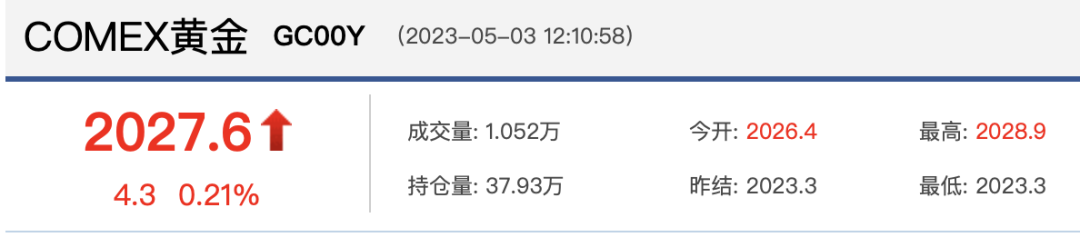 隔夜美股走低作用下,5月3日早盘恒指、国指、恒生科技指数纷纷低开,回港中概股跌幅居前,三桶油也在国际油价大跌影响下走弱。不过受美国银行业危机担忧情绪升温助力,国际金价再度站上2000美元/盎司关口,港股市场黄金股也集体走高。