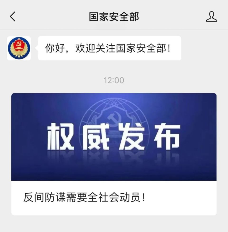 “反间防谍需要全社会动员!”8月1日,国家安全部官方微信公众号发出第一篇推文。