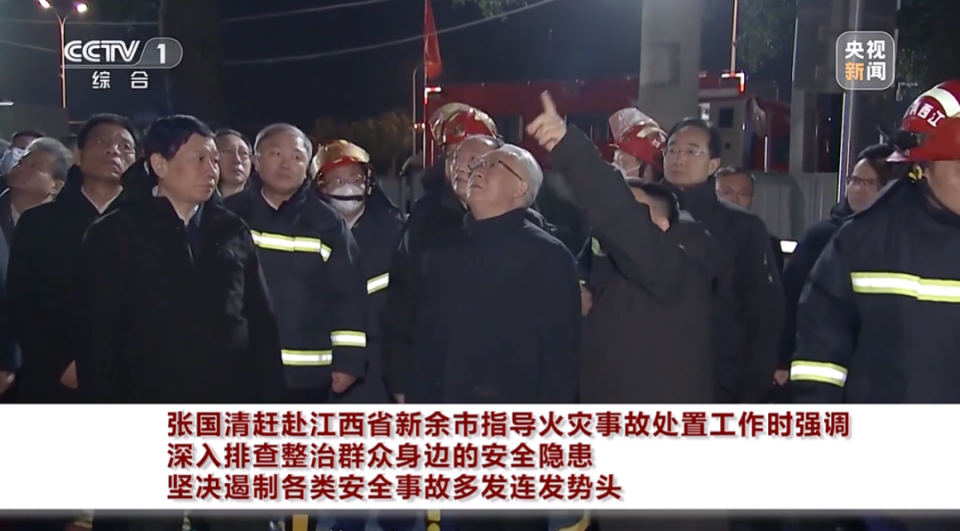 1月24日,中共中央政治局委员、国务院副总理张国清紧急赶赴江西省新余市指导火灾事故处置工作。