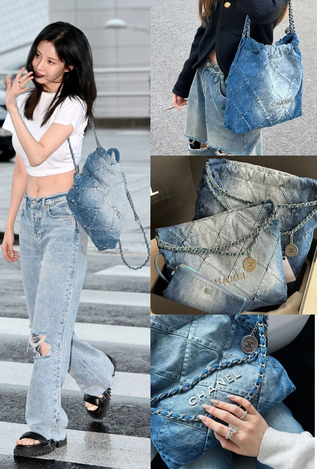 耐久性的包包当然不能少了Chanel的牛仔包,女明星们几乎人手一个,它采用水洗丹宁材质,展现出迷人的蓝白色渐变效果,不仅耐磨耐用,而且时尚感十足,无论是夏天还是冬天,这款包包的搭配效果都一绝,不用担心磕碰,搭配有型出片。
