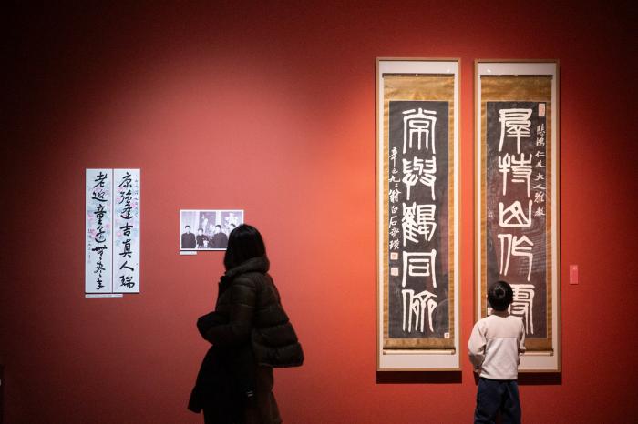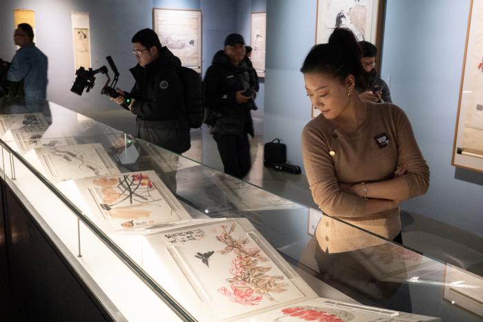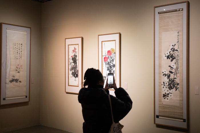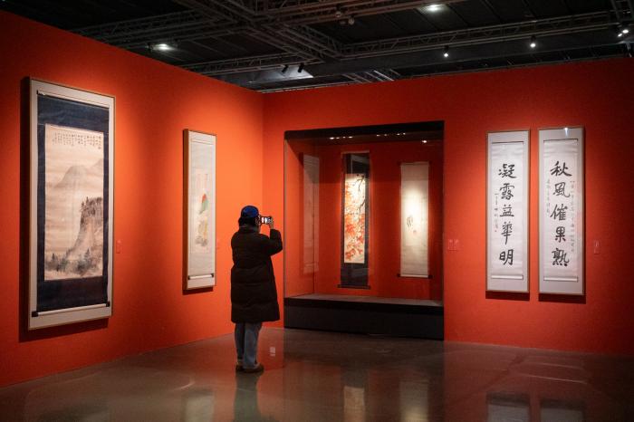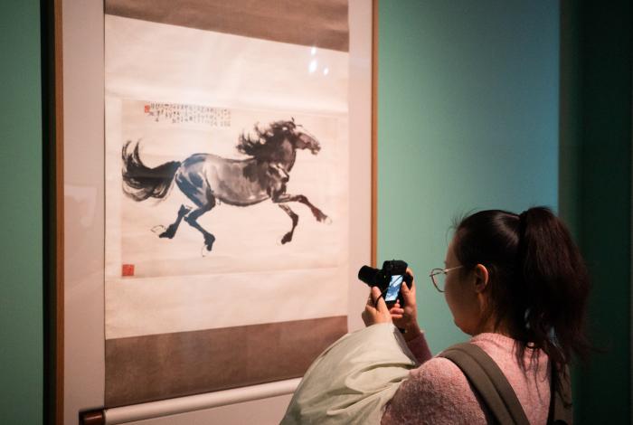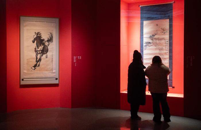 “往来千载——徐悲鸿纪念馆藏徐悲鸿、齐白石、张大千精品展”开幕现场。