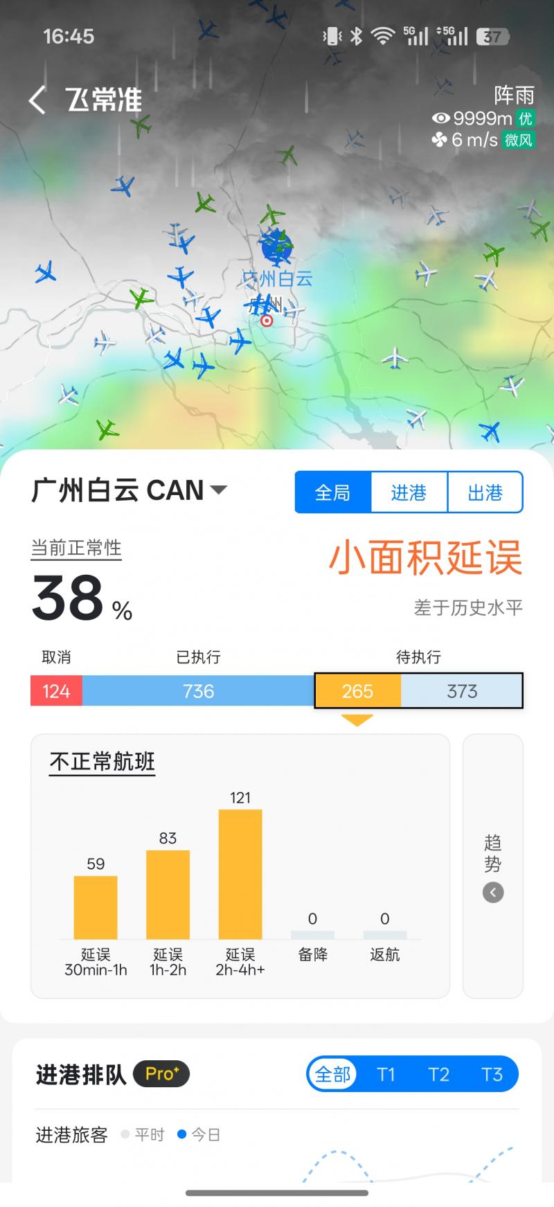 广州白云机场进港航班正在逐步恢复
