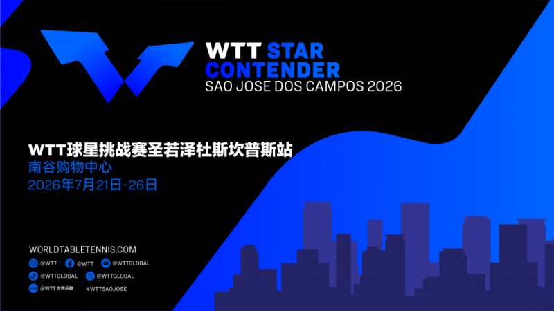 4月23日,世界乒乓球职业大联盟(WTT)官方宣布,2026年WTT球星挑战赛圣若泽杜斯坎普斯站将于2026年7月21日-26日,在圣保罗州圣若泽-杜斯坎普斯市的南谷购物中心举办。继2025年WTT球星挑战赛伊瓜苏站圆满举办后,巴西将连续第二年承办WTT球星挑战赛。