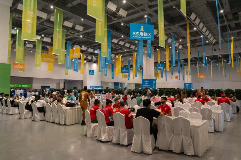 为应对45个国家和地区参赛人员的差异化需求,三亚湾红树林度假世界在餐饮保障上实施大规模功能转换。原可容纳5000人同时用餐的会议会展中心被改造为运动员主餐厅,设置中餐、欧陆、东南亚、东亚及清真五大风味餐区,另设素食专区、明档现制窗口与热带水果餐台。983人餐饮团队24小时轮值,确保全天候供餐能力。