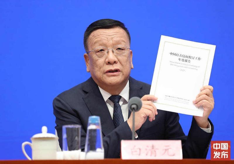 4月24日,国务院新闻办举行发布会。市场监管总局副局长白清元等受邀介绍《中国打击侵权假冒工作年度报告(2025)》有关情况。