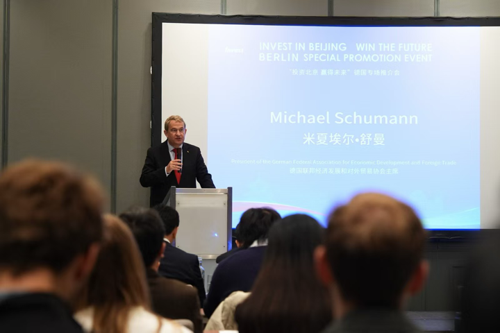 上午9时30分,推介会正式拉开帷幕。德国联邦经济发展和对外贸易协会主席米夏埃尔·舒曼、德国生物技术工业协会中国首席代表、德国健康联盟专家阿尔伯切特·勒夫博士、中国工商银行法兰克福分行副行长刘征先后致辞,对北京持续扩大对外开放、优化营商环境、推动科技创新与产业升级给予高度评价,一致认为北京与柏林在科技创新、绿色低碳、医药健康、高端制造等领域互补性强、合作空间广阔,期待以本次推介会为新起点,进一步畅通交流渠道、深化务实合作、实现互利共赢。