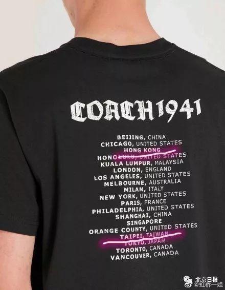 继Versace范思哲后,国际品牌Coach蔻驰也被曝出设计有不尊重中国主权的T恤,同时其外文官网将港澳台三个地名与中国、美国等国家并列,T恤设计不尊重中国主权。
