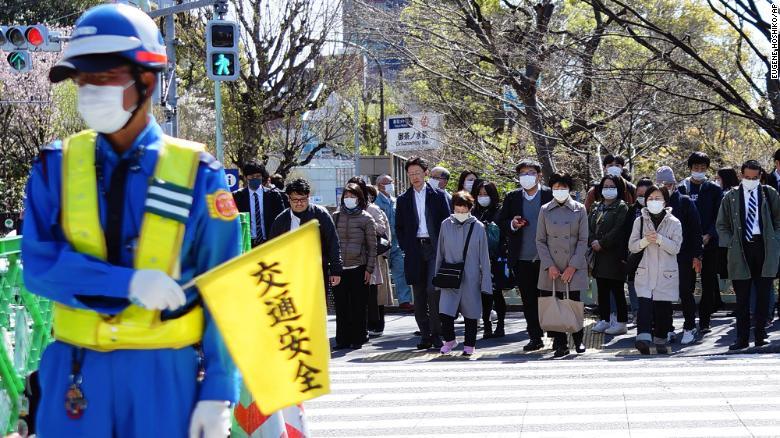 当地时间4月2日,日本东京街头的行人 图据CNN