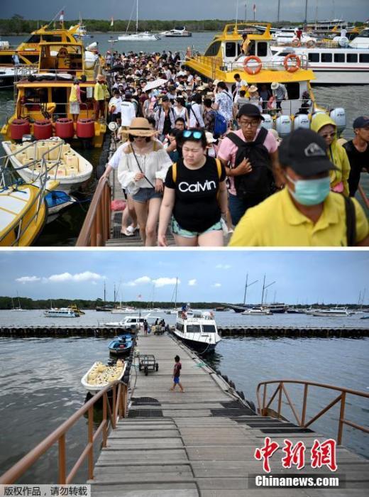 全球疫情之下的地标今昔对比,图为印尼度假胜地巴厘岛