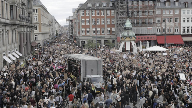 1.5万人聚集丹麦首都哥本哈根游行示威 反对种族主义