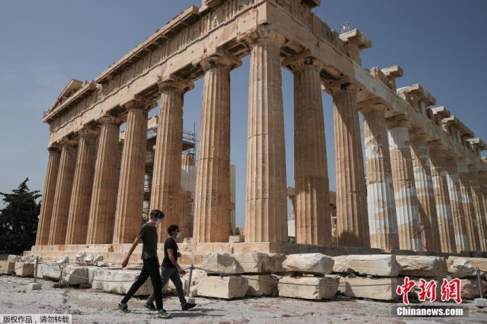 当地时间5月18日,希腊雅典,雅典卫城向公众开放,吸引游客参观,当天希腊露天考古遗址和各类主题公园当天起恢复开放
