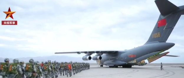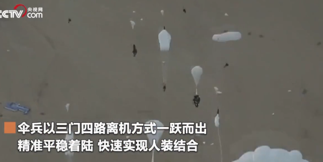 央视网披露,就在前述特战队员首次成建制进行高原空降训练的同时,我国自主研发的大型运输机运-20载着数百名伞兵和大型装备在高原戈壁深处进行空投空降训练。报道指出,训练中伞兵以三门四路离机方式一跃而出,精准平稳着陆,快速实现人装结合。